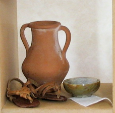 Make an oil lamp. These were made out of air drying modeling clay (kaminendo). Olive oil burns very well with wicks from old candle stubs that you can pull out with pliers before you throw the stubs away--the wicks can be as short as one inch ( 2 cm.). I think my girls made the lamps on the left before they even began first grade, but we still use them every year to light our passover supper. You can buy a child’s potter’s wheel (many American toy stores carry these.) It is quite difficult to get the hang of using it, so it would be best to save the potter’s wheel for when your children are at least in later elementary grades (see child-made and adult-made samples at right.)