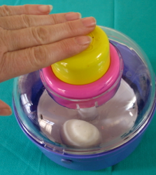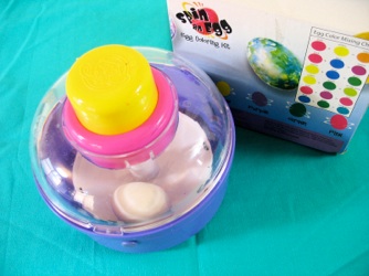 The spinner is a really fun way to dabble paint onto the eggs--just push the big yellow button and watch it spin.