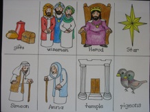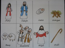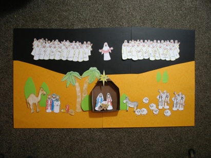 1.Bulletin Board: Make a background out of poster board. Use the printable figures to make a Christmas scene bulletin board. Add Christmas present shapes as a boarder. Let the children write on the presents what they will do for Jesus as a Christmas present this year. You may need to give them suggestions, such as giving one of their own toys to a needy child, sending money to a missionary, or playing with a younger sibling.