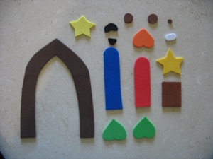 6.black beard and mustache for Joseph (if you can’t find black foam, color them with black permanent marker, or use brown foam.)