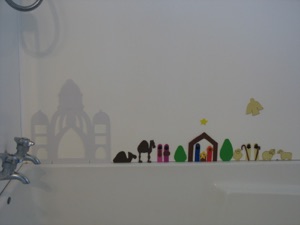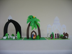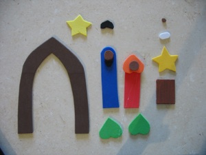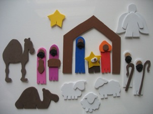 Glue magnets to the backs and you have a nativity set your kids can play with--to rearranging the scene as many times as they like. Good for Sunday school, too!