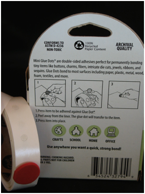 Note about Glue: Obviously you will need some form to fasten the pieces together. The quandary is what kind to use. A glue gun works great, but is best for adult use, since the glue gets hot enough to burn you. For children, all purpose white glue applied with a toothpick may be the best option, but you do need to let the pieces dry before moving them. If you can buy glue dots, that would be perfect! They are little dots of glue fastened to a roll of nonstick paper like double stick tape--no mess, no spills. Simply press the piece (red circle in photo) against the dot, then place the piece where you want it to stick. It is that easy! Glue dots are sold in craft stores and on line at Oriental Trading Company. Double stick tape may be the next best option (not for the bath toy) especially if an adult is cutting the pieces for the children.