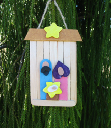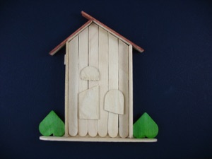 As I was designing this, I realized that there were a lot of popsicle sticks needing to be cut. So I came up with a quicker version for people in a hurry, or who want to use it as a Sunday School project. The quick version on the right uses a shorter size of popsicle sticks so only one stick had to be cut (the roof.) If you have the time, though, this one IS cuter.