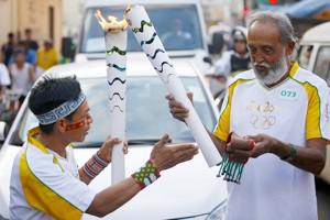 Show them the current olympic torch (look at the official olympic website) or show several of the past torches. It may be interesting to read the concept behind the design. Give them each a piece of paper to design their own torch. When they have completed the design give each an empty paper towel tube, or wrapping paper tube to wrap their design around and glue or tape to the tube. You can even tape bits of yellow and orange tissue paper in the top of each. The Rio 2016 website below has: