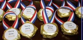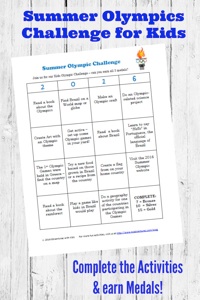 Give them the materials to design olympic medals, and step back and see them get creative. You can give them paper to draw them, or give them gold, silver, and bronze paper to glue to cardboard, or use clay that you can bake in an oven, such as Fimo, and bake their designs. Give them multi colored ribbons to glue on after baking. You could even give them cookie dough to design olympic medals, then bake them so they can eat them! You can color the dough, yellow for gold, and or make cookies with brown sugar for bronze, or go all out with real metallic colors to put in icing, available at some baking supply stores, or baking departments of craft stores.