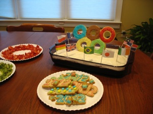 Food for an Olympic themed party can be as elaborate or simple as you want. Top a cake with cookies or M&M’s in the olympic ring formation, or bake number cookies for “2016.” Make taco fixings in a ring shape on plates, or cut the tops off of peppers for a pasta dish (no, there are no blue peppers--you will have to see my page to find out what food it is!). Breakfast is really easy--either doughnuts or bagels--already in the ring shape. For these and more ideas, see my page on “Fun foods for the olympics.”