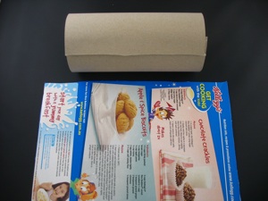1.Cut off one side of a thin cardboard box (such as one side of a cereal or cracker box) Roll in a tube, then glue and let dry.