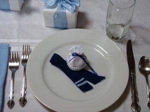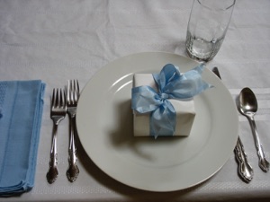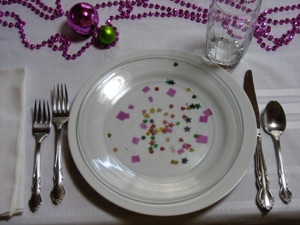 Confetti always makes it seem like a party. You can sprinkle it on the table, or under a clear plate. Make your own confetti by cutting up bits of color coordinated paper or use packets of purchased sequins or stars. Many party goods stores and dollar stores sell packets of confetti just for parties like this, so there are lots of options for shapes, colors and even words.