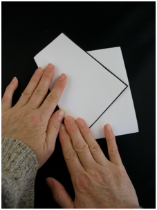 Fold the paper in half (“hamburger fold,” not “hotdog fold”)