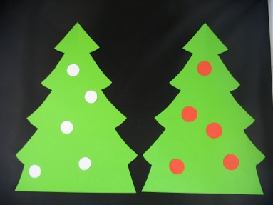 This game can also be a team style game--just cut out a tree for each team, and let individuals from the team put circles on their team’s tree. The team with the most decorations wins. There are several different ways to make these.