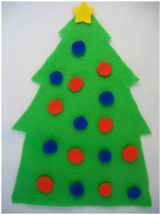Cut a tree for each team out of green felt, then cut shapes from different colors of felt to decorate the tree. If you don’t have a flannel board, glue felt or flannel to a large piece of cardboard, and cover the edges with colored duct tape.
