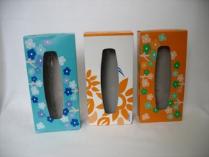 1.Cut off one end from a kleenex box--the end becomes the bottom of the mailbox, and the sides become the door and the back end of the mailbox.