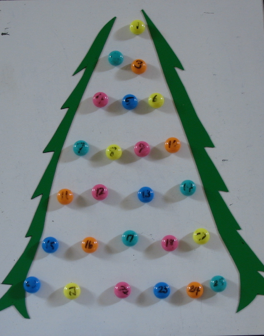This foam set is no longer available through the Oriental Trading Company. However, if you don’t mind going to a lot of work, you can make a foam or felt set using the photo on the left as an example. Each day, the child puts another figure on the scene to help count down the days until Christmas. I bought clear pockets at a hundred yen store (in photo on the right.) These hold the figures until it is the day to put them on the scene. Since the numbers are glued inside the pockets, the figures cover them until they are taken out of the pocket to reveal how many days are left till Christmas. Note that the numbers are in descending order.