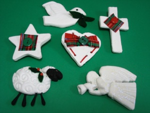 1.Week one, cut out clay ornaments with cookie cutters or patterns. Let dry.