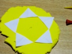 2.When you flip them out , you can cut out the star shape, and see where to poke the 3 holes along the edge of each triangle.