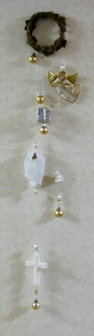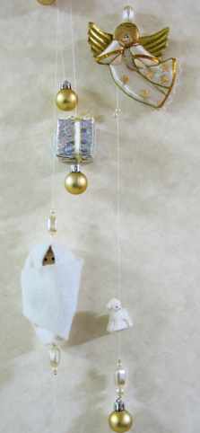 7.String them all together with beads or gold balls and hang them from a wreath.