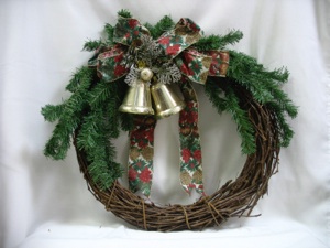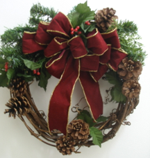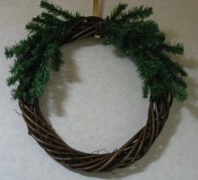 For decorating a vine wreath, buy a small inexpensive Christmas tree or swag and cut branches off using wire cutters (also sold at dollar stores.) Fasten some branches together in two bunches and fasten the two bunches to the top or bottom of the wreath with more florist’s wire. Add a bow in the middle of the two bunches, and add more decorations--fasten these on with wire, too. Use the rest of the tree branches to make another wreath, or use them with other kinds of decorations, such as with candles and balls in various nooks and crannies around the house.