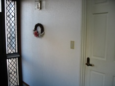 When choosing a wreath, you also need to keep the color of the background in mind. If you are going to hang the wreath on a white wall, a white wreath is not going to show up very well, but it will show up well against a dark door. Likewise, a vine wreath or a dark green wreath is going to disappear against a dark brown door, as in the photo on the left, but it will show up nicely on a white wall. Greater contrast will provide the most impact.