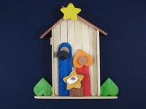 Make a Wooden nativity set with popsicle sticks and wooden shapes