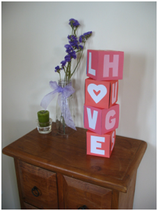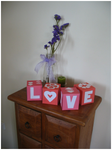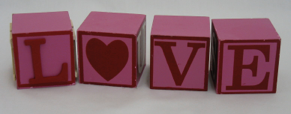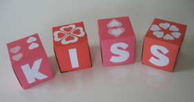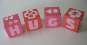 Put a different letter on each side of the cubes so they can be rearranged into 4 different Valentine messages.