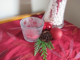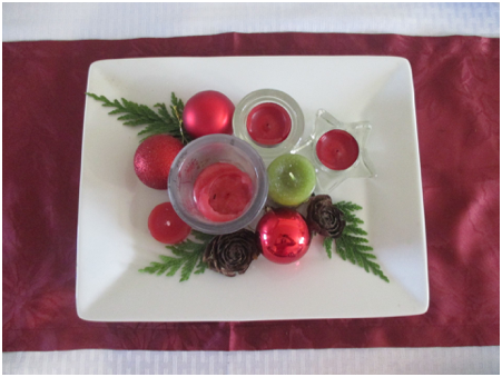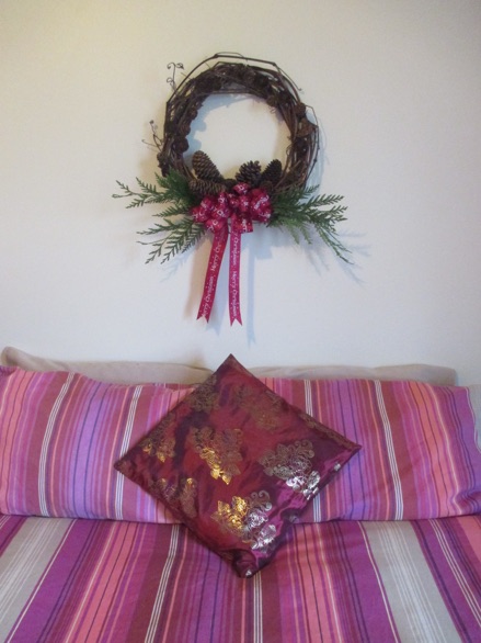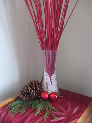 Here is a tip that doesn’t have anything to do with pinecones: You can add more Christmas decorations with a red throw pillow. Buy a cover at a dollar store. If you don’t have a throw pillow that you can cover just for the Christmas season, stuff the cushion cover with plastic shopping bags or towels. You will hear the crinkle when you move it off the bed at night, and you can smile because of the money you saved. Unless the room is a guest room, visitors won’t have a clue what is inside the pillow!
