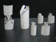 1.Stick gray paper onto 4 toilet paper tubes with double stick tape. Cut out body, head and legs from 4 toilet paper tubes as shown in photo below.