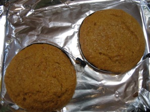 If you are feeding a crowd, make a base cake to form the whole garden. Shown here is a sheet cake made in a 15x10 inch (39x26 cm) glass pan. For a bigger crowd, make the cake in a bigger pan, or put several sheet cakes together to form a larger base. For a smaller group, leave off the base, and put the grave portion directly on a plate. It can be a challenge to find a base big enough to hold a cake this large. The one shown here is a cookie sheet that has no sides. If you don’t have a plate or pan large enough, cut a piece of corrugated cardboard to the size you want and cover it with tinfoil (aluminum foil). Tape the edges on the back side of the cardboard. Tinfoil (aluminum foil) is easy to rip, so be careful when you move it, especially once the cake is on it. It may be best to assemble the cake in the place it will be served so it does not get messed up during transport.