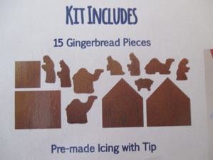 This set comes with the gingerbread pieces all cut out and baked for you! It comes with 4 colors of icing, and sprinkles and small candy for decorating.