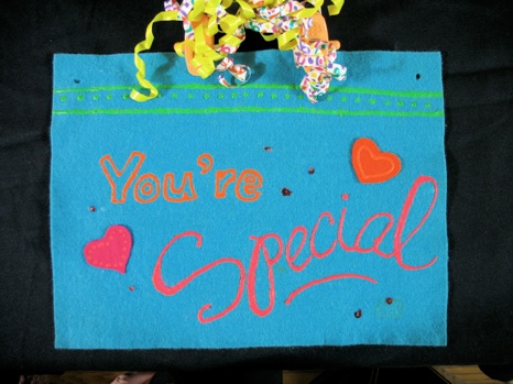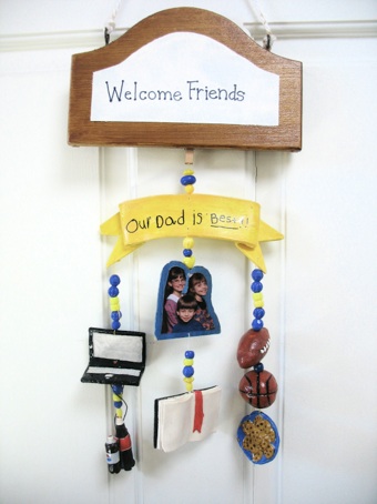 This “You are Special” sign is versatile because it can be used for anyone, on any occasion, and put anywhere. This one is held with a clip that has a suction cup on it, so it can easily be hung in many places--on windows, mirrors, doors, etc. Hang it in a different place each day during the week leading up to Father’s Day, for a surprise message each day. It is easy to make, too--just write your message with fabric paint on a piece of felt, and let it dry.