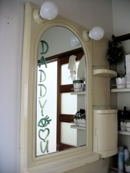 Write a message on the mirror with soap or lipstick, or whiteboard marker, or window chalk.