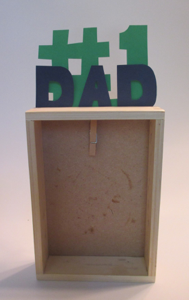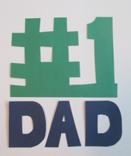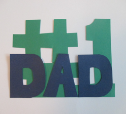 Cut out letters spelling “DAD” and the number one with the pound symbol from two different colors of paper. Be sure to make the “#1” larger than the “DAD” so that they both can be seen. Slide front layer and back layer between the paper strip and the back of the box. Don’t glue them--just slide them into the pocket on the back of the box so they stand up.