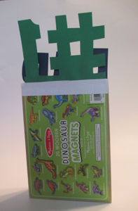 If you want to add a message like the one in the top photo, Cut a strip of paper the length of the box, and glue it to the back of the box (photo on right), but be sure to only glue the bottom half of the strip. That way you can slide the letters and number between the box and the paper strip to make the letters stand up.