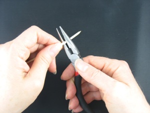 Use pliers to bend the skewer until it cracks, then bend it back the other way. Bend again until it breaks. Trim splinters with a pair of scissors.