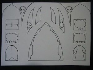 Fasten the angel to a black ribbon or piece of felt that is fastened to the back of the book. Flip it into the scene each time an angel appears.