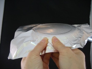 Tear the excess foil from around the edges--slowly pull the foil down against the edge, and it will tear off as if the edge of the plate had a cutter!