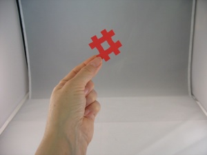 Open this cut shape, and you will have the pound, or number symbol. Glue it to the plate.