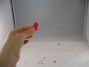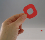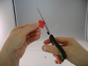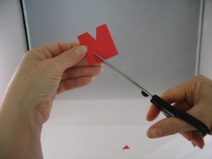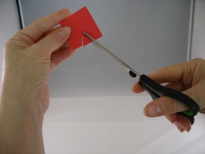 Cut the folded corner in a concave arch. When you open it, it should be an “O.” If not, cut another rectangle and try again.