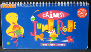 A chinese jumprope is a loop of coated elastic, that 2 kids put around their ankles. A third child tries jumping over it in ever increasing difficulty--the book explains how to do it. A chinese jumprope takes less coordination than a traditional jumprope because it doesn’t move. It is more fun with several friends, but you can get by with one child and 2 chairs to stretch the elastic around.