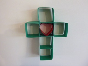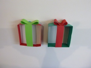 This Christmas wreath Is an inexpensive way to fill a large wall, so it is perfect for a classroom or church. Even the bow is made of paper, so it costs very little--all you have to buy is colored paper and glue. If you have a team of people working on the project, it can be made quickly, too. Also, if you can borrow a paper cutter, that speeds up the process as well. Each piece is fastened to the wall with mounting putty, such as Fun-tack or Blue-tack. If you have a large piece of paper or fabric, each piece could be glued onto that instead of the wall. If you choose to go this route, though, be sure to plan ahead for how to store it, because it is quite delicate--you can’t put anything on top of it. If, on the other hand, you keep each piece kept separate, you can store them in empty cereal boxes.
