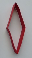 Open the leaf shape, line up the two folded places, and press the ring flat again. When you open it this time, it is no longer a ring, but a square or diamond shape.