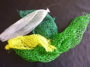 Make a hammock from a net bag that fruits and vegetables are sold in (garlic, oranges, potatoes, etc.)