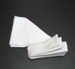 To fold napkins like this, 1) fold them in half to form a rectangle, 2-3) accordion fold till just past center, 4) fold in half so all the folds are doubled up. 5-6) fold the non-accordion end in a triangle to hold the rest, 7) put it on the plate and let go. The pleats should fall open into a fan. If they don’t, you folded it in half the wrong way--the accordion pleats have to be on the outside. It works with paper napkins, too.
