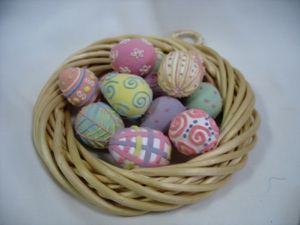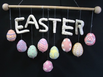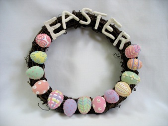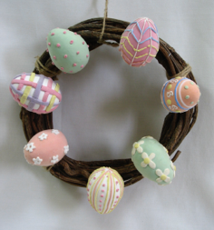 Once you know how to make nonbreakable Easter eggs, there are all kinds of Easter wreaths you can make. These eggs are hung with thread.