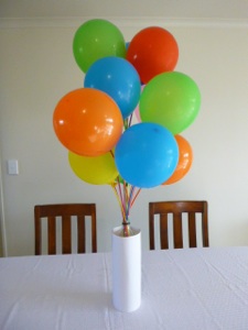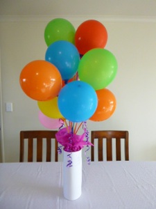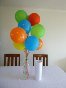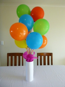 You can put the balloon bouquet in a vase instead of a coke bottle, but you may need to tie the sticks together so they don’t flop to the side because the mouth is wider. Also, make sure it is a really heavy vase since it is so tipsy.