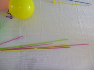 I left one straw uncut for the balloon on the top layer. Then I cut the straws to hold the balloon sticks on the next 2 levels. The bottom row was the only level that I used the balloon sticks by themselves.