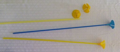If you want a big bouquet like the one shown, you will need longer sticks because the balloon sticks are only long enough to make 2 layers. of balloons, which is fine for a smaller bouquet. I found super long plastic straws, which were just the right size for the balloon sticks to slide into. The problem was that these straws were too weak to hold the balloons straight up. I solved the problem by fastening them together in 2 or 3 places, with twist-ties (plastic coated wire). The combined strength of them tied together held them straight. Dowels may work as well, you just need to figure out how to fasten them together--one option might be to tape the balloon stick to the side of the dowel so the cup sits above the top of the dowel.