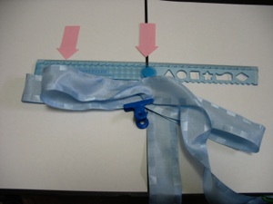 The most important technique is to twist the ribbon in the middle--one complete flip each time you return to the middle. If you have trouble holding it all, you can use clothespins or clamps to help you. But once you get used to it, you can just hold it in the middle.