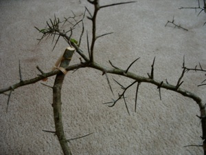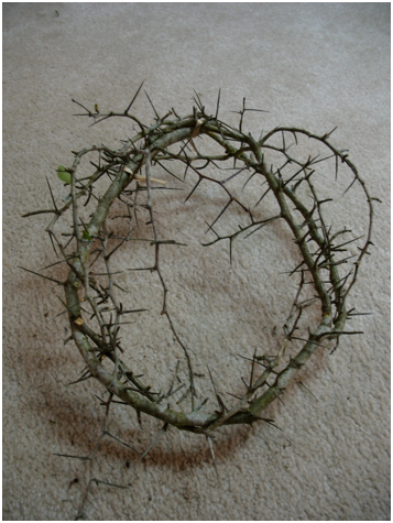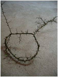 If you can’t find any of these supplies, you can order a ready made crown of thorns from Christian Books (see a link to the right.)
