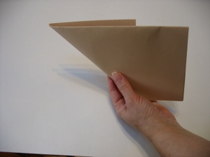 2. Fold the left folded edge up to the top open edge to form a triangle