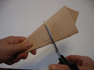 4. Cut along the shortest edge (on the back side) and you will have your teepee cut out.